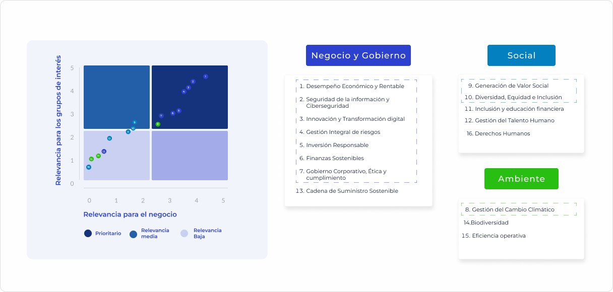 - We have developed the climate strategy for Grupo Aval and its entities, identifying all business risks and opportunities, upon which we will set targets and develop actions to meet them.